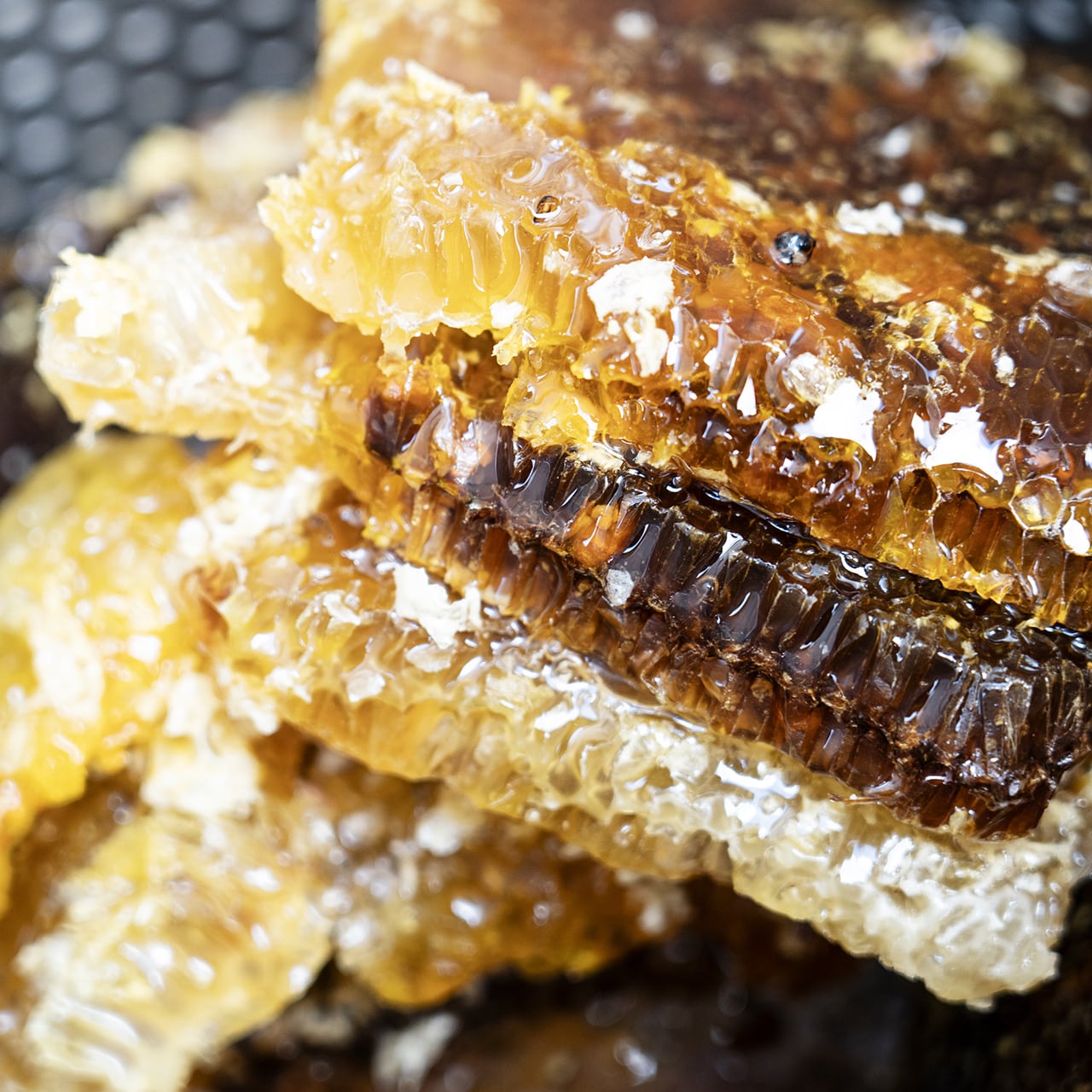 基本、野生なので簡単に誘引することが 難しく、1〜2年に1回程しか採蜜できない上に、はちみつの採蜜量も少ないので、とても希少です。 日本蜜蜂は複数の花から花粉を採取するため、はちみつは必ず「百花蜜」となります。純度100 %の百花蜜です。